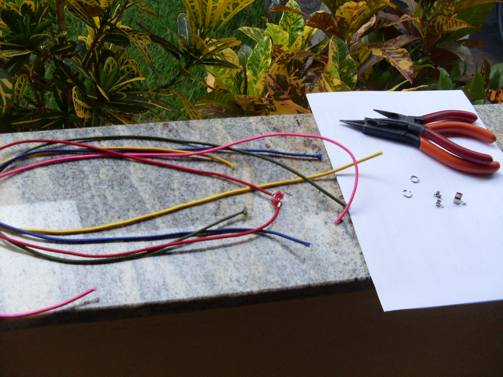 Coloque um terminal em cada ponta do elástico e una com a argola. PRONTO!!!
